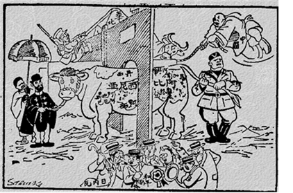 C.战争的机械化形态显著增强 D.制空权成为战役的核心要素 14.下图为1936年3月22日《申报周刊》上刊登的漫画《两条被牺牲的牛》,图上一条牛的背上写着“华北”,一条牛的背上写着“阿比西尼亚(埃塞俄比亚)”,下方绅士们身上则写着“日内瓦”,作者的创作意图是 A.批评国民政府对日妥协政策 B.讽刺列强纵容意大利的扩张 C.表达对恢复世界和平的向往 D.揭露国联纵容侵略牺牲弱国 15.下表为1928—1934年苏联谷物生产总量和谷物征购量(单位:百万公担)据此可知,当时的苏联